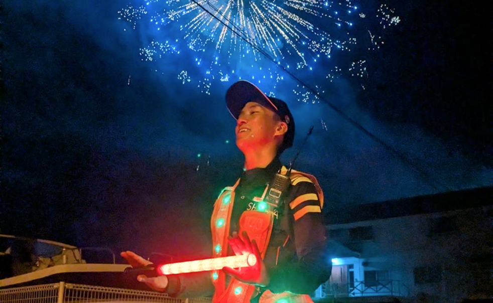 季節ごとに行われる、地域の皆さんが楽しまれる催しものには、警備力が必要となります。私たちSHINWAは現場の安全はもとより、「来年も来たいね」と思っていただけるように丁寧な誘導を心掛けています。