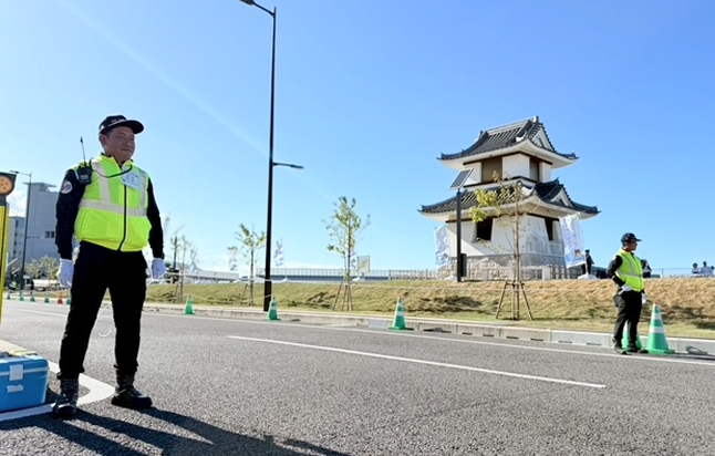 一般車両や来場者がスムーズに通行が出来るよう、分かりやすい交通規制で混雑を解消します。