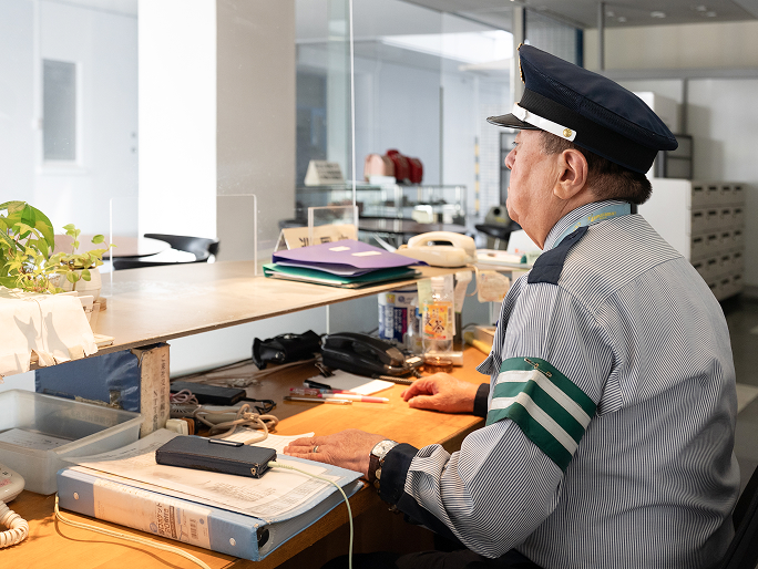 特定の施設に常駐し、施設内の巡回や人の入出管理・来客者の対応・電話応対などを行い、施設内外の安全と秩序を維持する業務です。施設警備は日々の業務を着実に遂行することで施設を守り、利用者が安心して過ごせる環境が提供できるように安全確認や事件事故の予防に努めています。